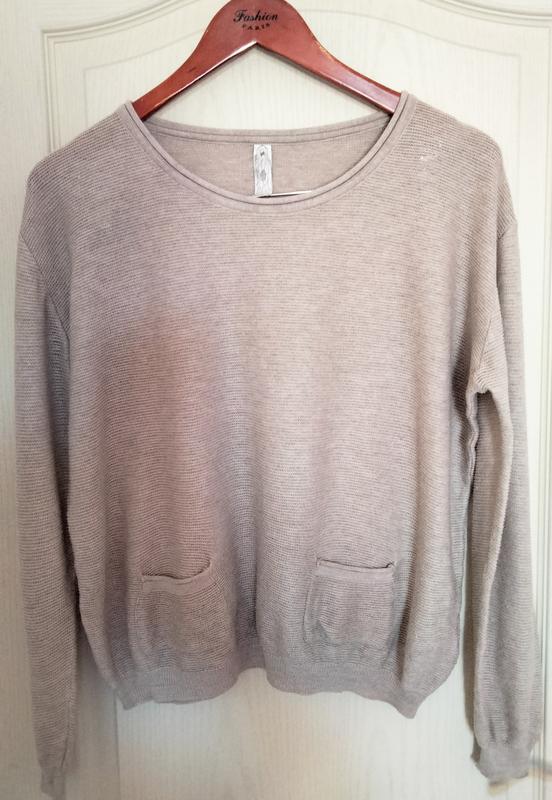 кофта трикотажна. розмір М бежового кольору з карманами довж. 52 см. ог. 60 д.рукава 60 см