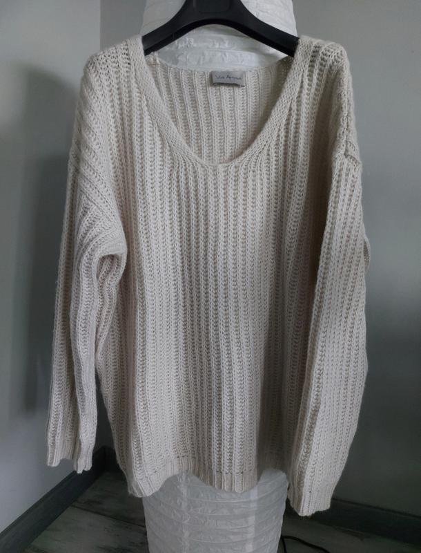 Об'ємний светр Via Appia в ідеальному стані. Розмір вказано 40(л), м'який, приємний, бавовна, мохер(склад на фото). Плечі спущені70см, рукав50см, під руками68см, довж.по спинці70см. На фото одягн.на розмір36-38, зріст 163-164см.