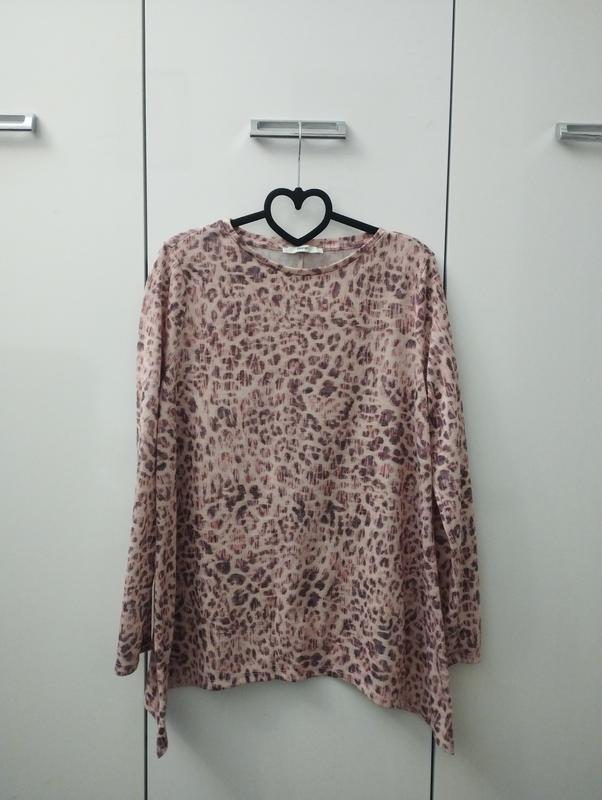 Джемпер в розовых оттенках, с леопардовым принтом, крой трапеция, по бокам углы длиннее по низу, ткань тянется. Ориентируйтесь на замеры. Плечи 37.5 ПГ 51, тянется к 58 ПТ 58, тянется до 64 ПБ 68 Рукав 61 Длина 68