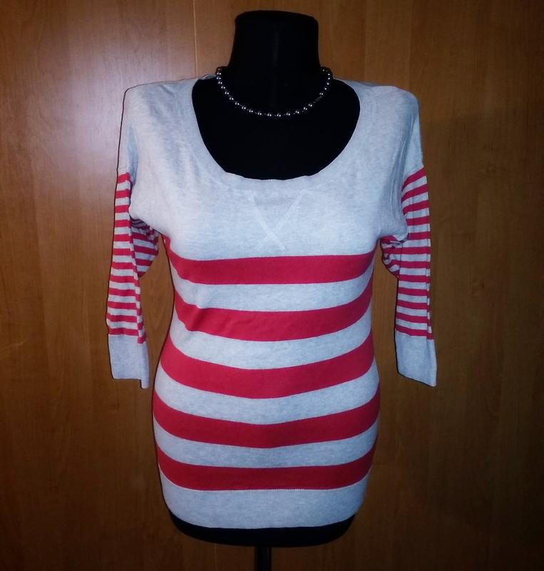 Джемпер 44-46 серый в красную полоску в хорошем состоянии,хлопок,ПОГ 44-52,ПОТ 39-49,длина 55,рукав 3/4,очень мягенький.Манекен 46р.
