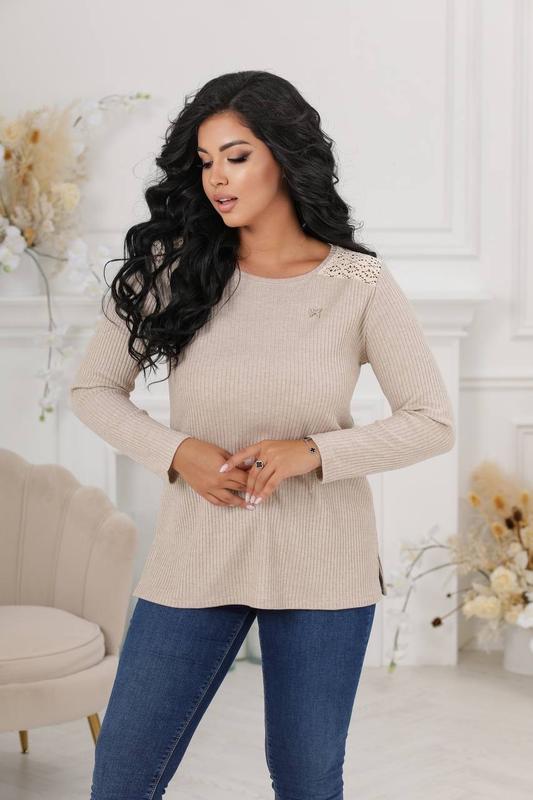 Джемпер Модель: 019 Тканина: ангора Цвет: молочный, бежевый Размеры: 48-50, 52-54, 56-58 Замеры по готовому изделию: 48-50: ОГ-98,ДВ-68,ДР-56 52-54: ОГ-106,ДВ-70,ДР-56 56-58: ОГ-114,ДВ-72,ДР-56 💫Цена: 740 грн. Джемпер очень приятный на ощупь. Ткань хорошо тянется. На плечах вставка из льняной прошвы. Джемпер имеет украшение «Бабочка». На модели размер 48-50.