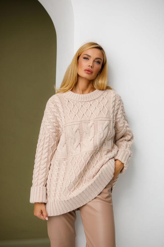 💛💙ДЖЕМПЕР 2716💙💛 Стильний подовжений джемпер з напіввовняної приємної до тіла пряжі. Комбінований візерунок - родзинка виробу для створення образів у стилі кежуал. Довжина виробу близько 70 см (+- 2 см), ширина виробу 60 см. 📐42-52 🌈перлина, зелений, теракотовий