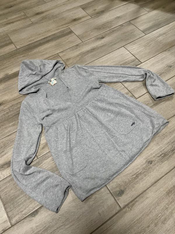 Очень классная кофточка с капюшоном и открытым декольте. Стильна. Размер С/М