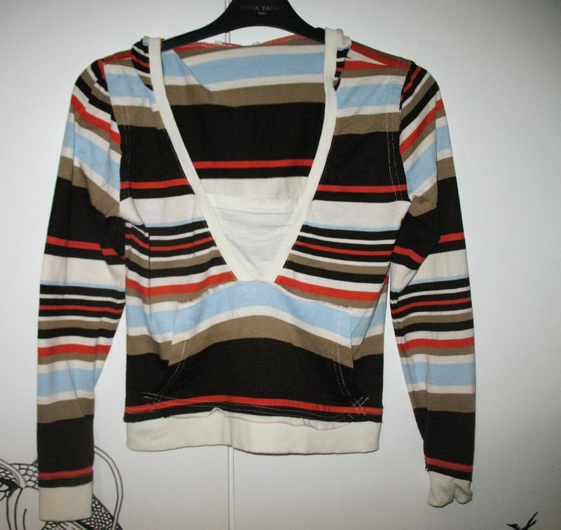 Приємний смугастий пуловер з капюшоном.