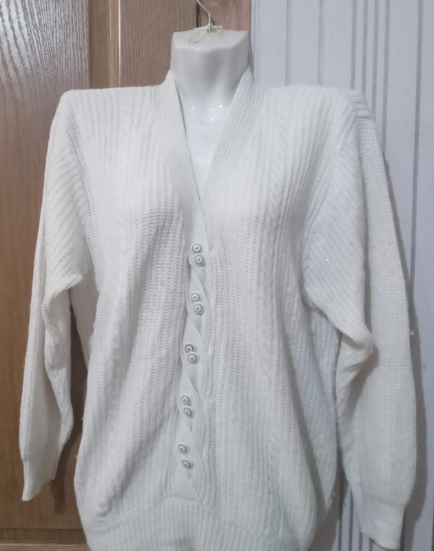 Кофта машинной вязки с пуговицами Плечи. 44 ПОГ. 52 ПОБ. 52 Рукав. 54 Длина. 62