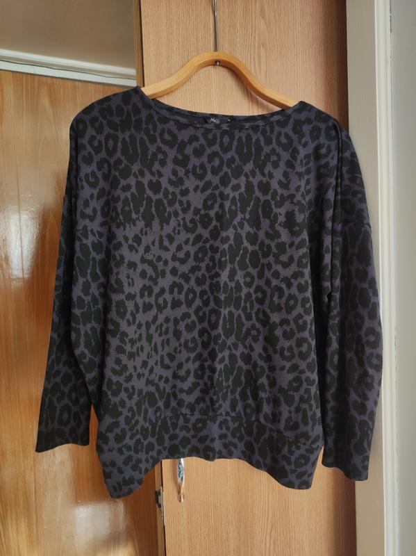 Красива кофта, темного синього кольору з сірим тваринним принтом , внизу з патентом