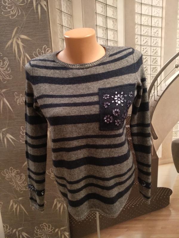 бренд Princess goes Hollywood ценовая политика джемпера 250-300евро джемпер в серо синей полоске декорирован голубыми стразами складник 70% шерсть 30% кашемир размер 34