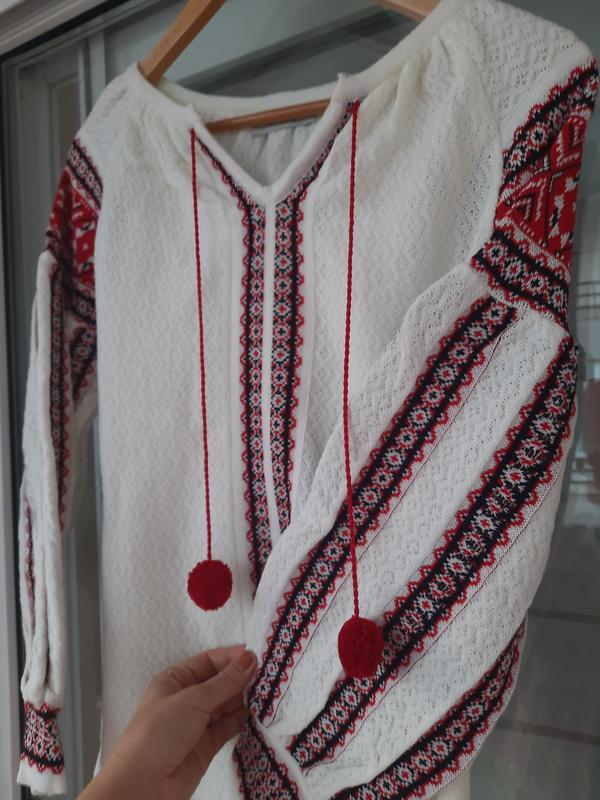 Яскрава модель з помпонами зігріє та підніме настрій взимку. Тканина трикотаж розмір 38-40