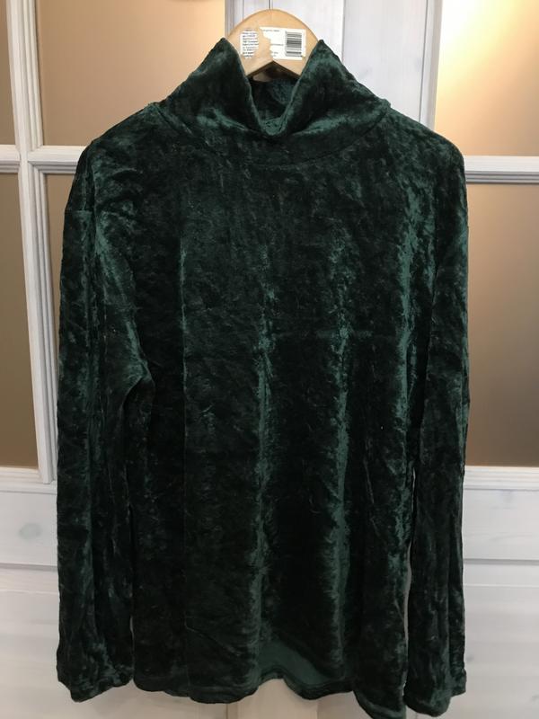 Обалденная кофта, красивого зеленого кольору, оксамит, є трохи катишек з внутрішньої сторони. Пройма 20см, груди 48см, довжина 58см, плечі 40,5 см, рукав від плеча 52,5 см, низ 50см.