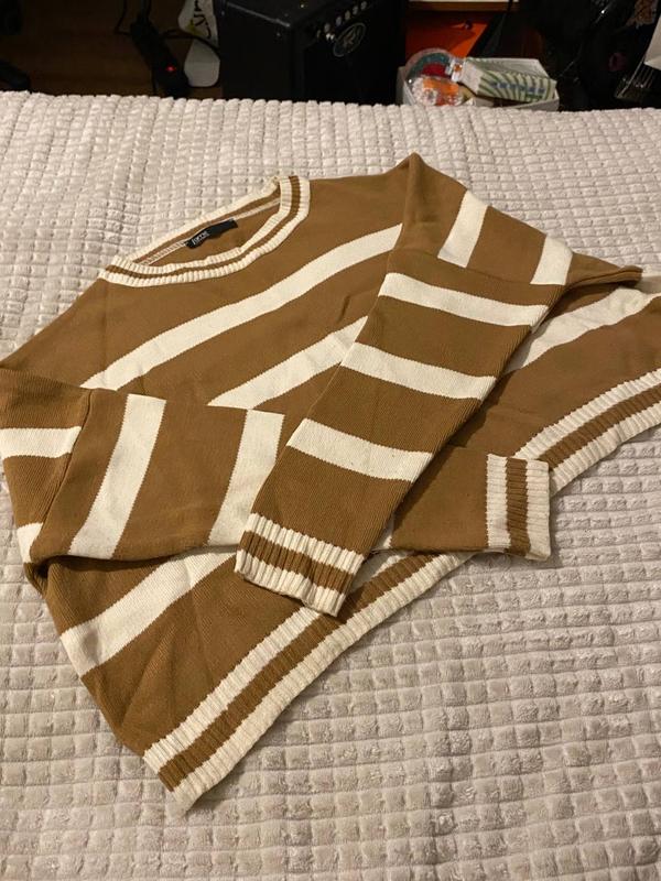 Кофтинка в смужку. Мені подобається носити цю оіч на розмір М - виглядає як правильний оверсайз, аде ідеально підійде на повноцінну Лку також. Вкорочена.