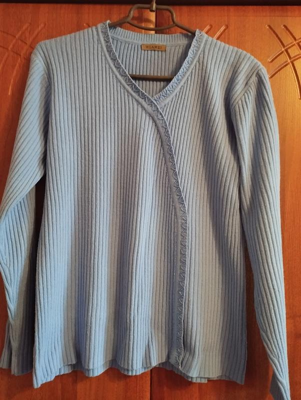 Кофта, джемпер з V образним коміром, голубого кольору. Колір, як на останньому фото де склад тканини. Натуральний склад, без синтетики. Оздоблення з бісеру. Ідеальний стан, без нюансів і затишок . Не секонд.