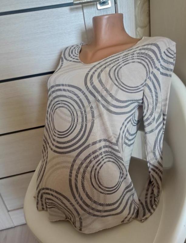 кофта с кольцами / Today. Цвет бежевый с черным (темный серый). Размер S., подойдет и на М. Линия груди 45, тянется больше. Длина 60 см. Длина рукава 56 см. Немного просвечивает. Возможен торг.
