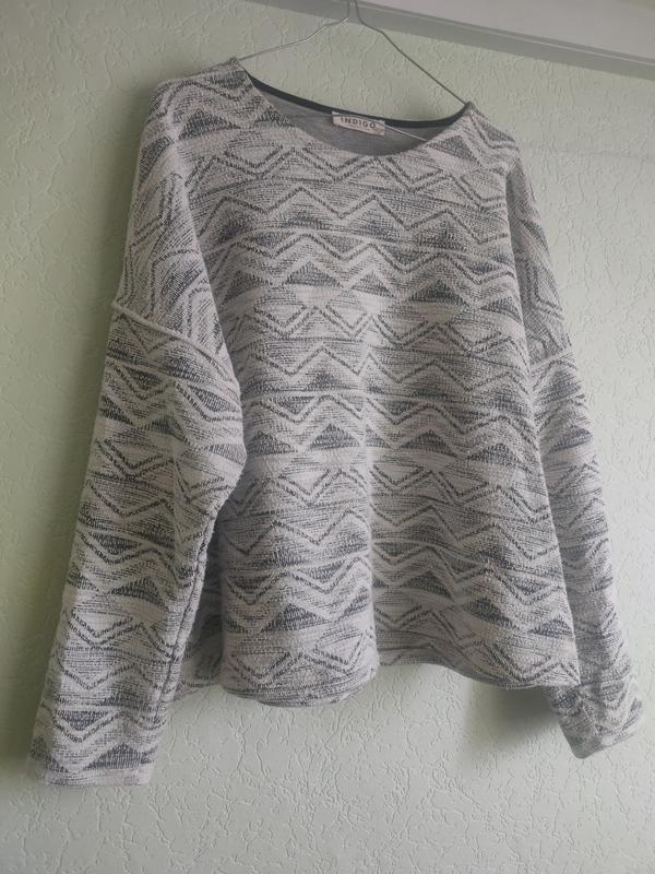 M&S Indigo collection Розмір UK 20 EUR 48 Вільний крій, стильний фасон і орнамент. Довжина светрика 61 см ПОГ - 65 см Довжина плеча - 28 см Довжина рукава - 43 см. Котон 62% поліестер 38%