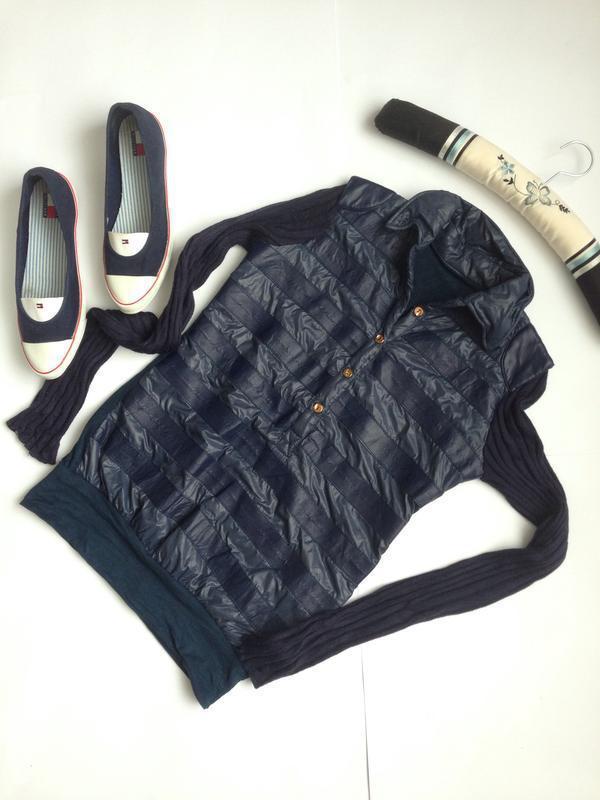 Шикарная комбинированная кофточка Пог 45 и не больше. Пот 41. Низ резинка по 35- тянется до 50. Длина 61. Рукав от плеча 70, от подмышки 56.