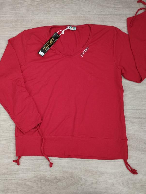 Женский джемпер. Цвет: мертвоанчевый На рукавах и по бокам есть шнурочки, можно собрать в гармошку (рукава таким образом можно сделать 3/4). Хорошо тянется. Размер M: Ширина плечей 39 см Полуобхват груди 47 см Длина рукава 48 см Длина изделия 55 см На самом деле цвет мертвественный (камера передает более красный). Материал: 95% вискоза, 5% эластан (ФОТО БИРКИ 6).