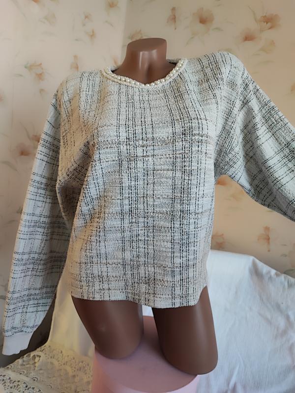 Легкая и эластичная женская кофта. Подробно обмысленный дизайн подарит вам комфорт и свободу в каждом движении. Легкая, мягкая и уютная кофта с заниженной линией плеча и объемными рукавами станет ярким акцентом вашего гардероба: - свободный фасон. - заниженная линия плеча. - Круглый и классический воротник, украшенный искусственным жемчугом, по спинке застегивается. - объемные и свободные рукава с трикотажным манжетом. - эластичный и комфортный трикотаж, совершенно не сковывающий движений. - ткань мягкая, износостойкая и не колючая – можно носить на голое тело. Состояние идеальное.
