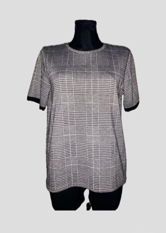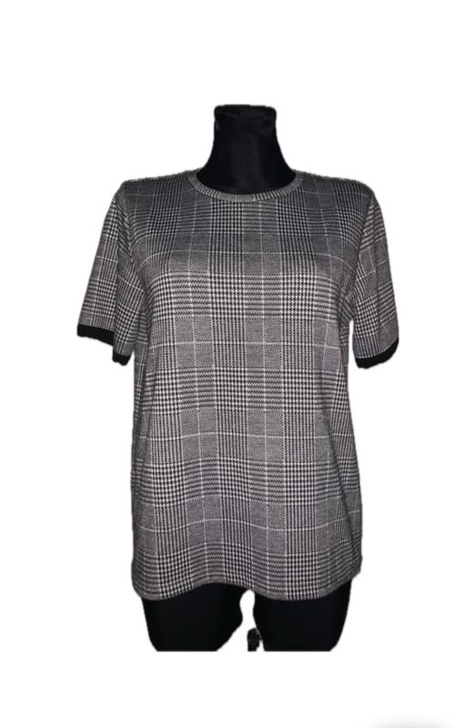 джемпер з коротким рукавом Плечі 38 см, ПОГ 50 см, рукав 25 см, низ 50, довжина 63 см. Еластичний.