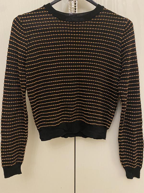 Дуже ефектна кофта ,чорного кольору в смужку золотого кольору з додаванням люрексу.