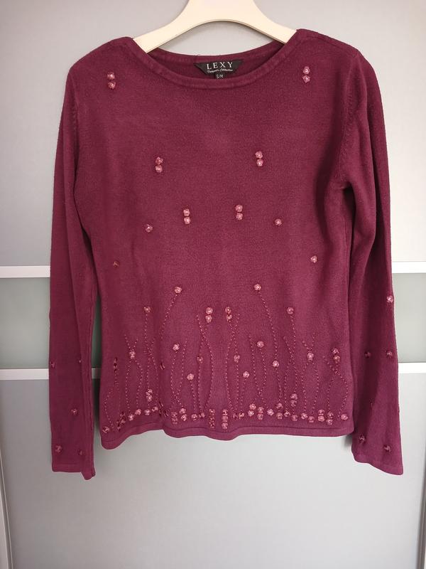 Кофточка бурякового кольору в гарному стані, р38. Заміри: плечі 39, рукав 62, пог 51, пот 44, поб 46, довжина 56см.
