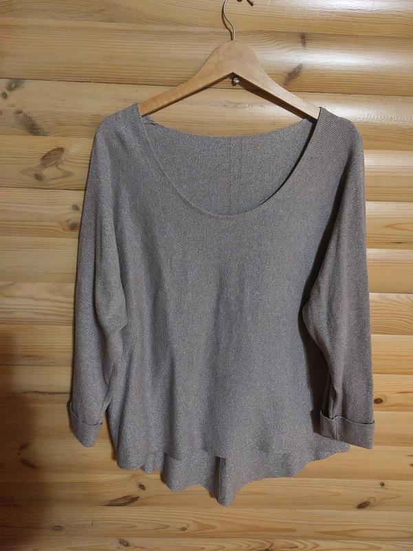 Ошатна кофтина батального розміру.Приємна до тіла.Не колеться, з приглушеним блиском.Перед коротший, зад довший.Спинка на гудзиках,як декор.Крій ,, летюча миша".Довжина спереду від плеча 70см, довжина ззаду 77см. довжина рукава від горловини 66см. пог.60 поб 62см 62