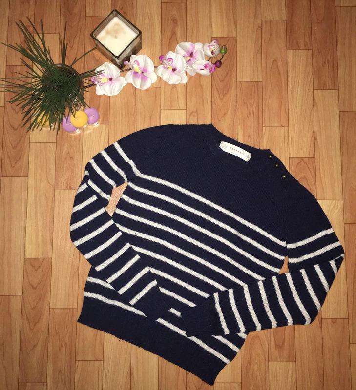 тепла в смужку кофточка Zara • стан: гарний, НЕ розтягнута ( є кошлатість, видно на фото 4 ) • розмір написаний М, але йде на XS/S • декор: зліва на плечі гудзички круглі
