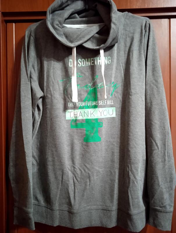 Кофта з великим коміром 65% поліестер, 35% бавовна Бренд Colours Розмір XXL Довжина виробу по спині вниз 64 см Довжина по лінії плечей 42 см Довжина по лінії грудей 58 см Довжина рукава 63 см Довжина плеча 8 см Довжина коміра 20 см