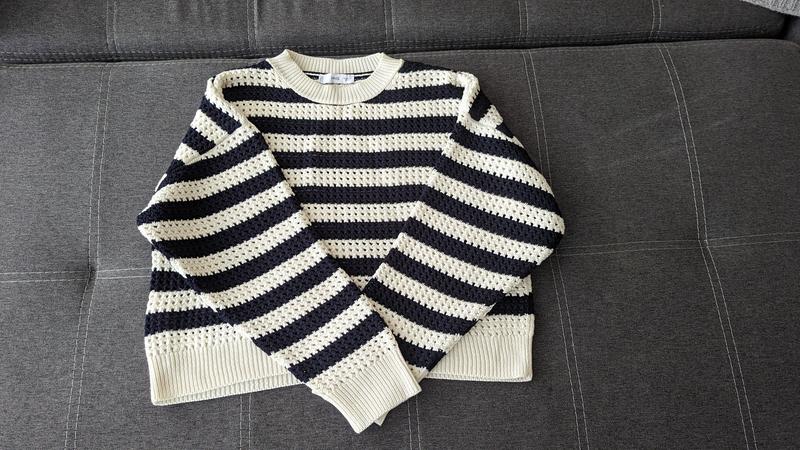 Бавовняна ажурна кофтинка в полоску, стан ідеальний, моя власна річ, тому запаху секонду немає. Дуже класне доповнення до весняних образів. розмір М, але в мене Хс-С і носила як оверсайз, теж стежить чудово 👍