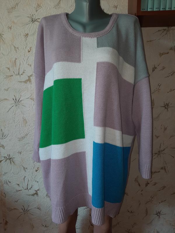 Етикетки з розміром немає, дивіться уважно заміри. Тканина середньої щільності, дрбре тягнеться. Склад тканини, зазначений виробником: 50% акрил, 50% бавовна. Стан: хороший (на 7 з 10).Є легка кашлатість, не критично. Заміри: довжина від верхньої точки плеча до низу: 80. довжина рукава від горловини: 70. Плечевий шов сильно приспущений. напівобхват біцепса: 19 тягнеться до 24. напівобхват грудей: 74 тягнеться до 84. напівобхват талії: 73 тягнеться до 83. напівобхват стегон: 74 тягнеться до 84. ширина між плечевими швами: 80. 22