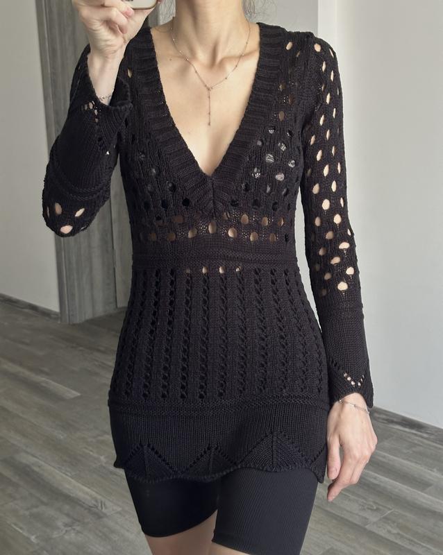 Розмір S-M Чорна вʼязана кофта в дірочку