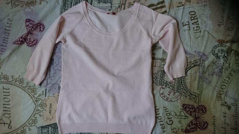 Рукав три чверті, ніжно рожевого кольору. Трикотажный.