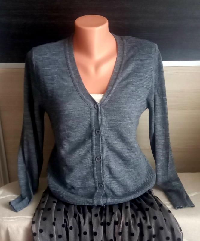 Стильная и комфортная кофта на пуговицах Frarose Milano (Италия) Цвет - серый. Состав: шерсть - 10%, мохер - 20%, акрил - 60%, вискоза -10%. Размер - М Длина - 55 см. ПОГ - 48 см, ПОТ- 42 см. ПОБ - 46 см Плечи ( от одного рукава до другого) - 40 см Длина рукава- 61 см. Все замеры сделала в не натянутом состоянии