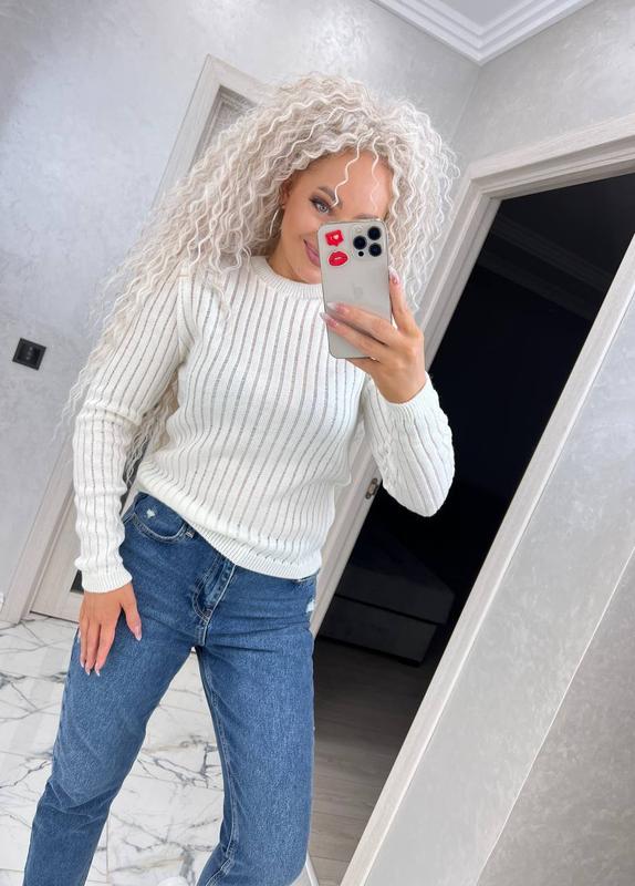 Светрик Модель 5046 Склад: 30% акрил; 70% вовна. Розмір 42-48 (універсальний) мод) На дотик дуже тоненький та приємний до тіла Кольори: пудра, молоко, чорний, сірий, шоколад Заміри виробу: Довжина светрика 60-65см. Довжина рукава 62-64 см. Обʼєм 44-50см.