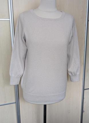 без недоліків колір: беж склад: 100% кашемір розмір: 40,( однак орієнтуйтесь по замірах) заміри: довжина: 61 півобхват груді: 48, тягнеться до 54 ширина плеч: 34 довжина рукава: 49, від шиї 53 низ: 38, тягнеться до 50