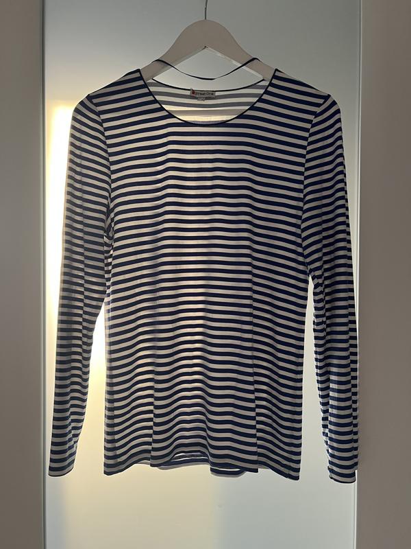Прожам тільняжку ,стан новий,дуже приємна до тіла,колір синьо-білий,розмір 40-42 Заміри Довжина 64 см Рукав 57 см НОГ 44 см тканина еластична,добре тягнеться