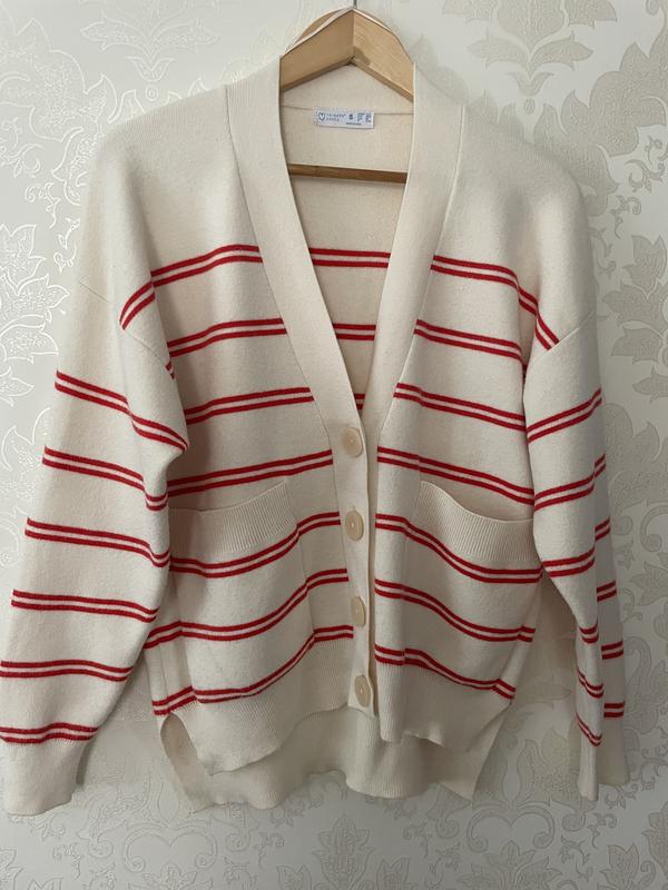 Стильний кардиган Щільний, дуже приємний до тіла, мʼякий. Спинка подовжена Стан ідеальний p. M ПОгрудей 54+ Рукав від горловини 68 Довжина 56/62