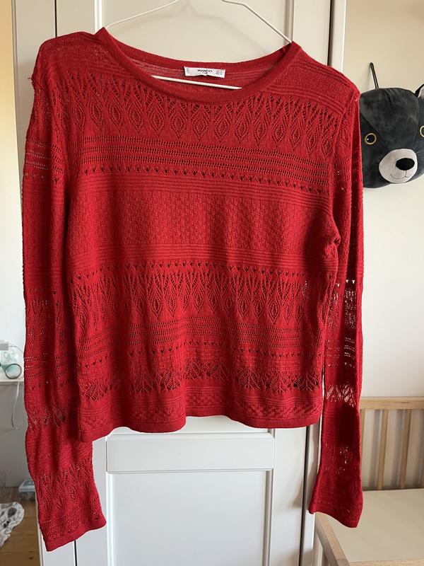 Трендова ажурна кофта від Mango Розмір S В одному місці (показала на фото) потрібно трохи підшити, думаю за рахунок плетіння не буде помітно Крім цього стан ідеальний
