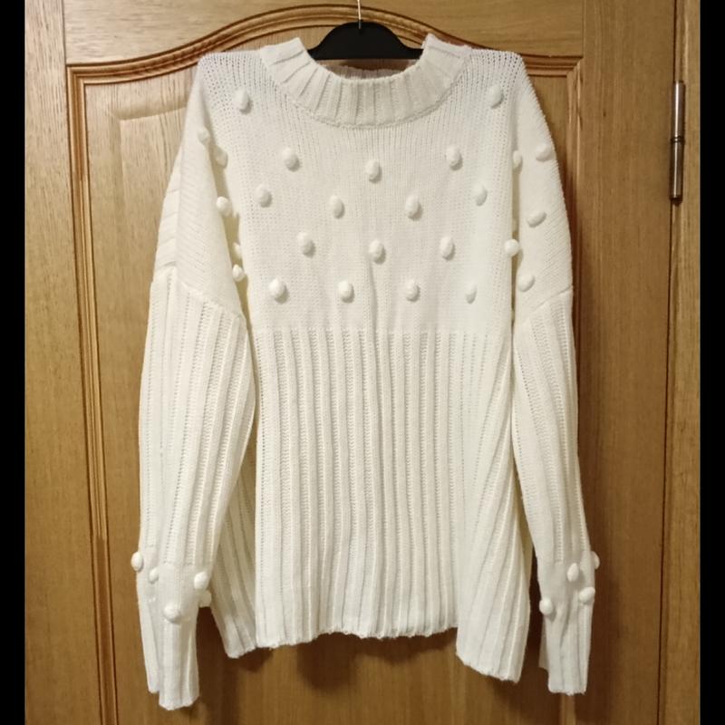 Уютная белая кофта для осенне-зимнего лука. Женский вязаный белый свитер оверсайз, выполненный из приятной нити, комфортно садится по фигуре. Рукав широкий и втачной. Указан размер XL, но ориентируйтесь на замеры, будет хорошо до 56-58 размера: ПОГ, ПОБ 71 Длина 66 Рукав от шеи 72 Стан нового. ДИВОТИТЕ ПРИМЕЧАНИЕ ИНШИ МОИ ОГЛАШЕНИЯ