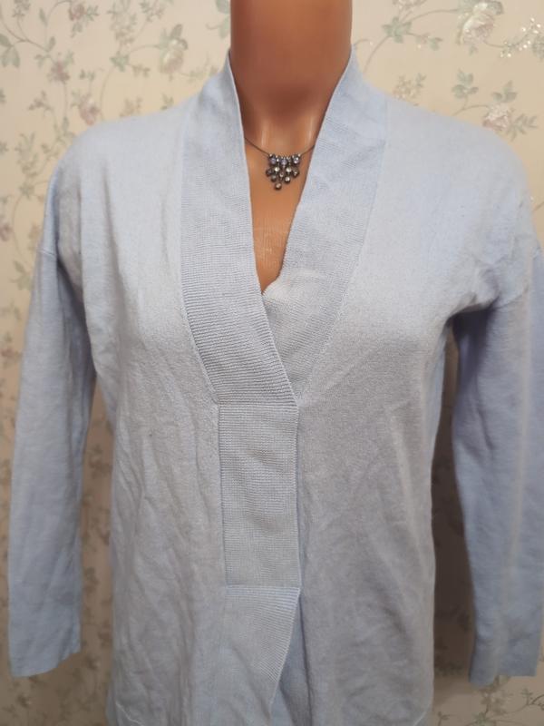 м,яка шерсть,блідо голуба ,є зашито ззаді по шву горловини ,на фото видно
