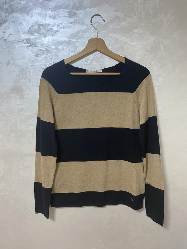 Джемпер жіночий німецького преміум бренду Vanilia, розмір 38 ( M) . Склад: 62 % сotton, 35 % viscose, 3 % kashmir. Довжина 62 см, напів обхват грудей 46 см, рукав реглан від горловини - 73 см.
