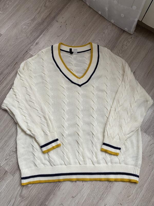 Стильний джемпер H&M. Вільного крою, в стилі old money. Мʼяка, приємна до тіла тканина, склад акрил. Заміри на фото. На бірці вказано розмір L, але підійде на xl, xxl. Орієнтуйтеся на заміри речі, порівняйте зі своїми речами, що ви носите.