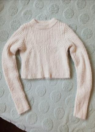В отличном состоянии , фирменный укороченный свитер , цвет айвори , пушистый , теплый , ПОГ 37 см , ширина низа 33,5 см , длина рукава 58 см , длина 34 см .