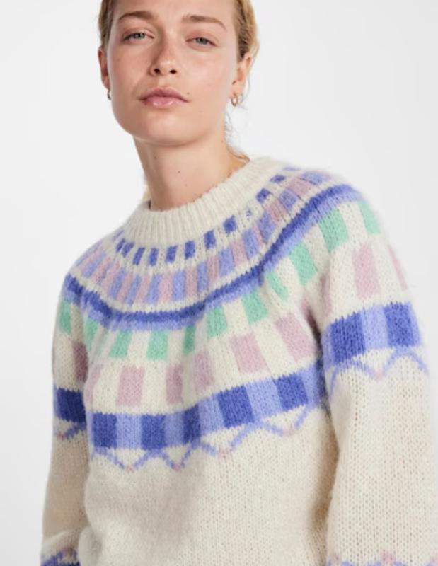 П... Кремовый свитер «Sinta» PIECES Кругла горловина Трикотажний манжет в рубчик воротник в рубчик Рельефный, мягкий на ощупь 17143533