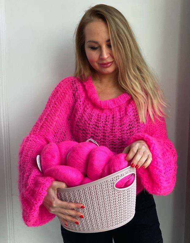 Светр -павутинка AngelaMasterica з мохеру в неоновому кольорі вʼязаний,ручна робота. Оверсайз.