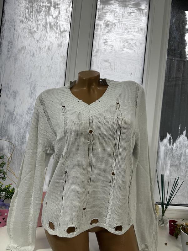 ЖІНОЧИЙ СВЕТР Артикул: 6788 Стильна моделька з потертостями та декоративними дірочками В широченній палітрі кольорів. Матеріал : машинна в’язка. Гарної якості. Країна виробник: Україна Розміри: універсальний 42-46. Параметри моделі: 87-74-94 Зріст 169см Виміри: Довжина виробу - 53 см. Довжина рукава -59 см. Ширина плечей - 40 см. НОГ - 52 см. Низ - 50 см.