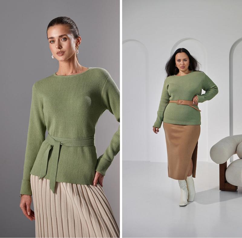 Джемпер лаконічного дизайну з натуральної теплої та м'якої пряжі з еластаном. Комфортне еластичне переплетення з тонкими вертикальними доріжками м'яко огортає фігуру. Горловина оформлена охайною бейкою. В комплекті - в'заний пояс в тон. Довжина близько 64-66 см (+- 2 см). Ширина в спокійному нерозтягнутому стані 49-55 см. В розтягнутому стані 59-65 см. Довжина рукава 66-65 см. Ширина плеча 9-12 см. Довжина поясу 1,8 м. Ширина - 3 см. Склад та догляд 50% - МОДАЛ 20% - ШОВК 15% - НЕЙЛОН 15% - ЛАЙКРА