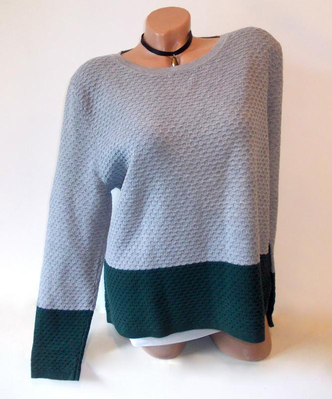 Вільний светр прямого крою♥ Розмір вказаний 18, за фактом можна і менше, на М-ку сидить як оверсайз. Довжина 60 см. Рукав 60 см. Ширина по плечах 42 див. ПОГ 55 див. По низу 55 див. прямий Крій. Матеріал середньої щільності, фактурний. Відмінно поєднується з лосинами, скіні, м'якими спідницями міді. На демисезон. 55% бавовна, 38% нейлон, 7% віскоза. Є нюанс: плямочка на зеленій смузі спереду. Як варіант можна задекорувати або замалювати маркером в тон. В іншому стан хороший.