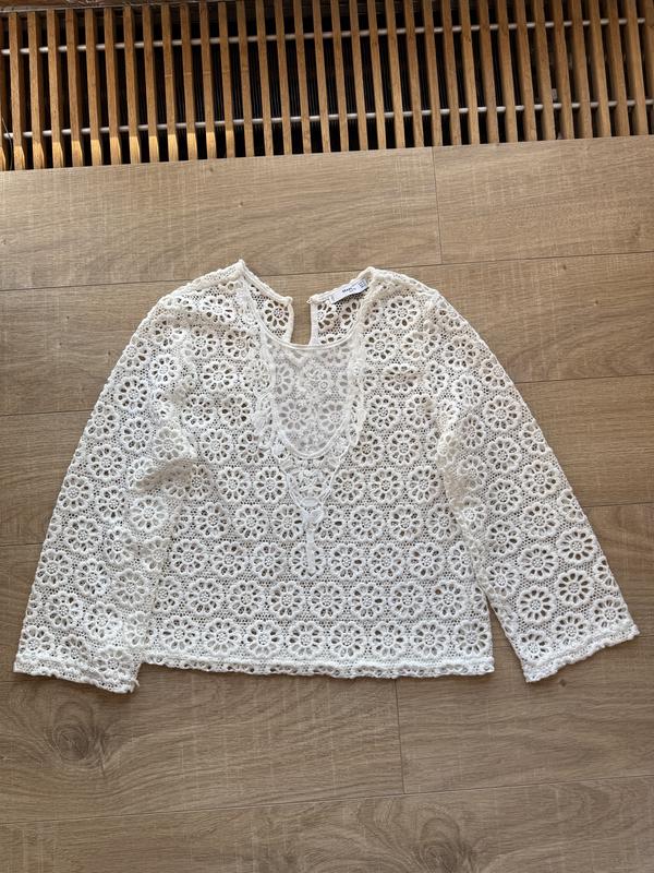Прозрачная и очень красивая кофточка. Размер S. С переда нашите кружево. Одягала 2 рази. Рукава 2/3