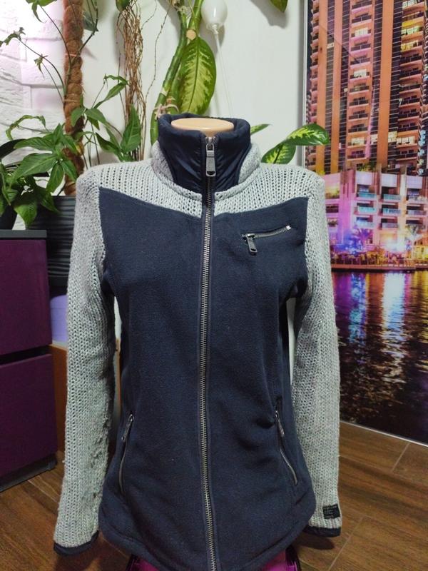 Тепла, з флісовою підкладкою, рукав крупна вязка, на трикотажній підкладці. Довжина 66, рукав 65, ПОТ 45