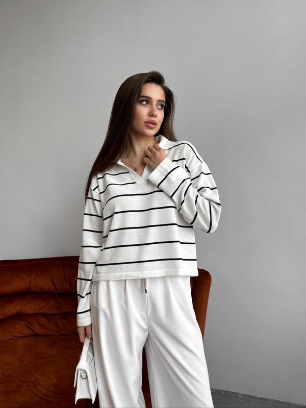 Легкое и приятное к телу поло в полоску 😍✨ Стильное поло свободного кроя обеспечит комфорт и станет идеальным дополнением к любому гардеробу. Легкая текстура и мягкость ткани делают его незаменимым выбором для повседневных образов! 💫 ✔ Арт. Levi ✔ Состав: 70% акрил, 30% шерсть ✔ Размер: 42-46 ✔ Кольори: 🔹 Черный-белый ⚫⚪ 🔹 Молочный-черный ⚪⚫ 🔹 Кэмел-молочный 🤎🤍 🔹 Молочный-кемел 🤍🤎 🔹 Серый-белый ⚪⚫ ✔ Цена: 1100 грн 💰 Комфорт и стиль в каждой детали! 💕