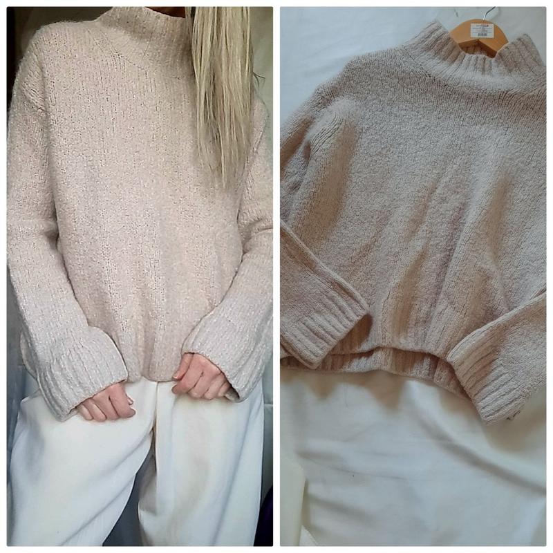 м'який джемпер, стан дуже гарний, H#M, p.S, 10% вовна 70% акрил 5% альпака 14% п/а. Плечі приспущені 52 рукав 50 груди 64 довжина 60